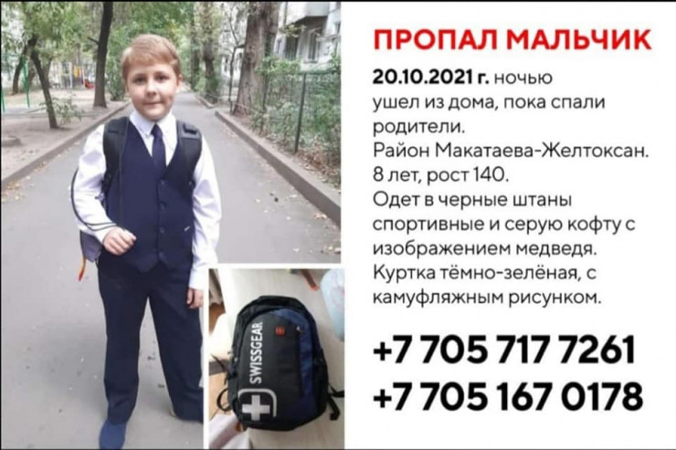 Пропавшего мальчика также ищут волонтеры группы Lider.kz. В их объявлении уточняется, что ребенок вышел из дома по адресу: Наурызбай батыра, 26/1 (угол Макатаева).