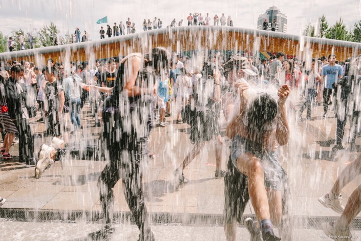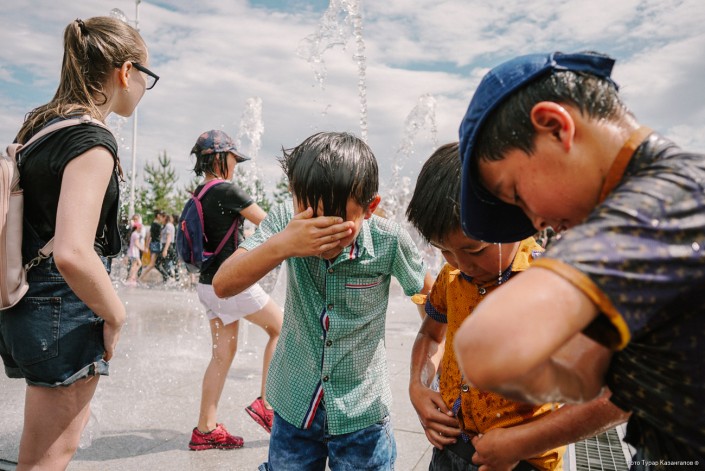 Молодые жители главного города Казахстана буквально заполонили Центральный парк, чтобы спастись от жары в фонтанах. Со стороны это выглядит как какое-то безграничное веселье.