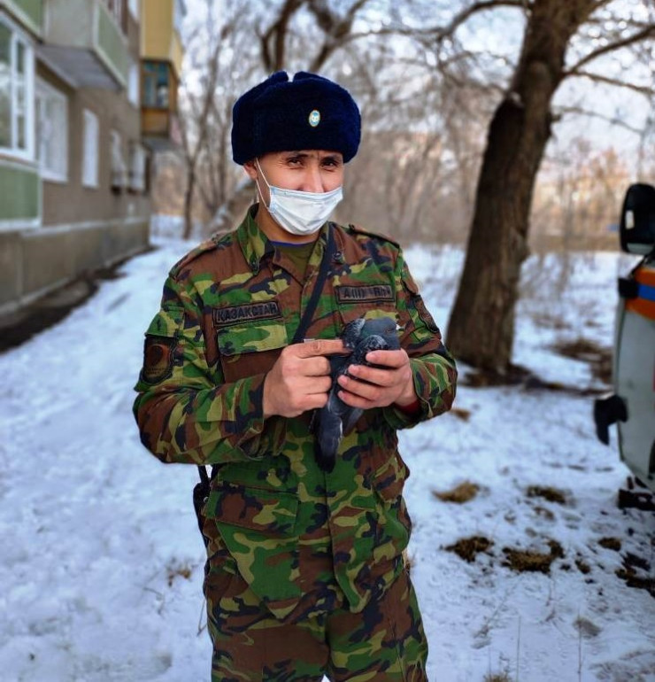 В Усть-Каменогорске спасли голубя, запутавшегося в медицинской маске Фото ДЧС ВКО