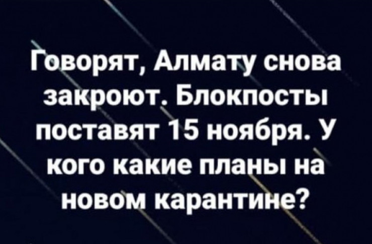 В социальных сетях и мессенджерах появилась информация о том, что 15 ноября в Алматы выставят блокпосты. Информацию прокомментировали в Комитете санитарно-эпидемиологического контроля Казахстана, передает корреспондент Tengrinews.kz.