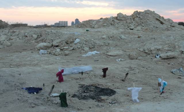 Житель Актау случайно обнаружил в 33-м микрорайоне города элементы загадочного ритуала - круг из скрещенных палок на земле, на которые были надеты "рубашки". О своей находке мужчина рассказал местному изданию "Лада".