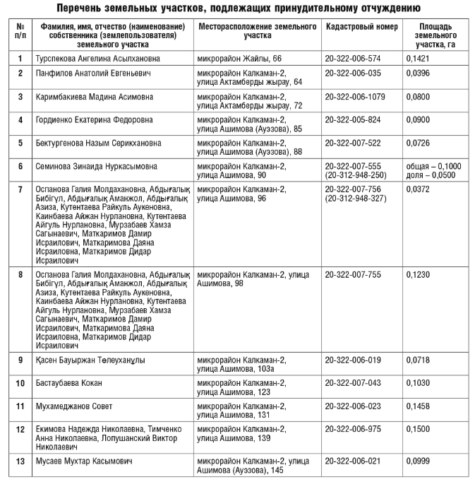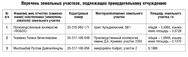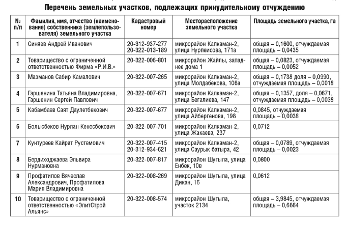 В Алматы для государственных нужд изымут 26 участков. Постановления опубликованы в газете "Вечерний Алматы", передает Tengrinews.kz.