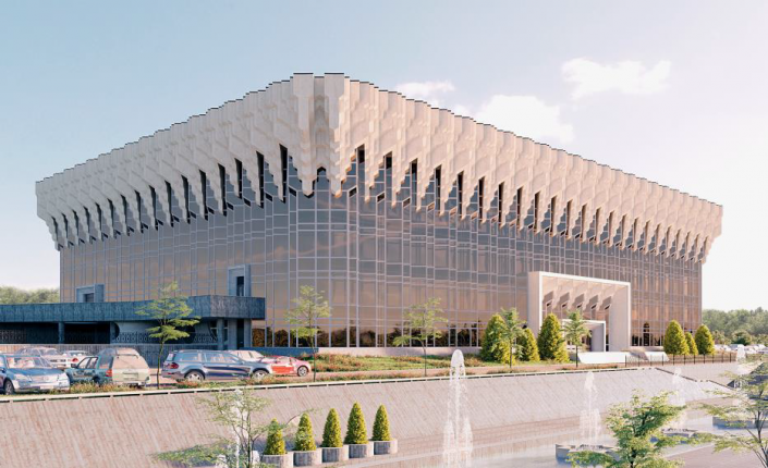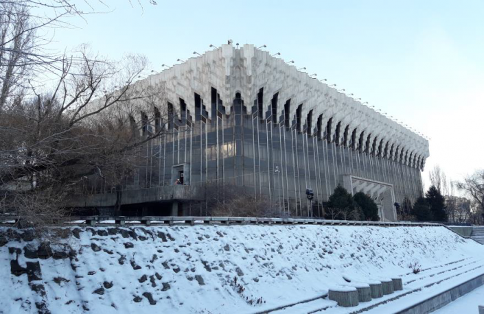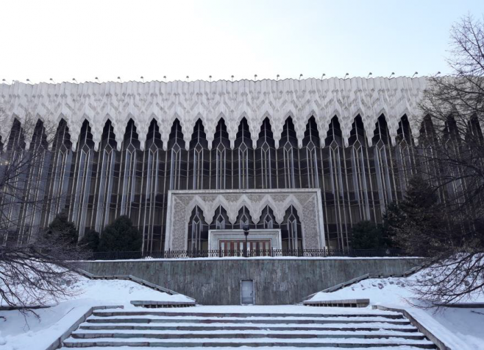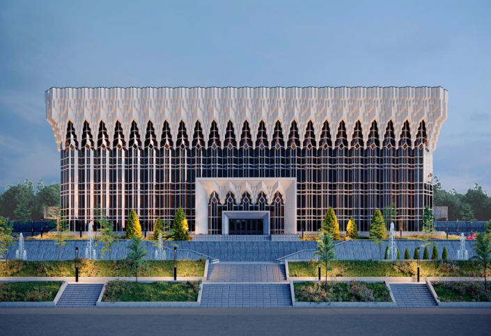 Здание было построено в 1983 году. Комплекс здания состоит из двух блоков. Фасад был полностью остеклен. Основная ценность - восточные мотивы сталактитов во внешнем декоре, резной портал, дымчатое стекло.