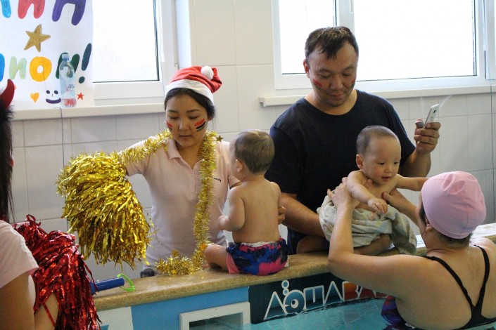 "Мы занимаемся с двух с половиной месяцев. Сегодня мы все сделали, что от нас требовалось: ныряли под водой, на восемь секунд задержали дыхание, прыгали с бортика, проплыли два метра под водой, сделали сальто на кольцах. Даниэль молодец, не подвел меня. Нам все нравится. Обязательно продолжим заниматься. Хотя бы до двух лет точно будем ходить. И самому ему очень нравится, спит лучше. Я всем мамам советую", - поделилась впечатлениями мама Даниэля Елена Руя.