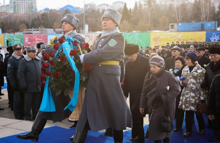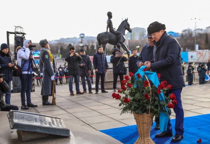 Руководство города, совета ветеранов, политических партий и общественных объединений, участники декабрьских событий 1986 года, молодежные организации, а также жители города возложили цветы к главному символу Независимости на площади Республики.
