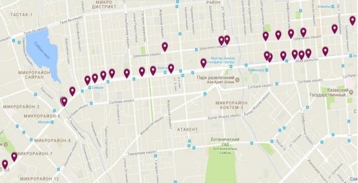 Общее расположение камер "Сергек" на карте Алматы. © instagram/almaty_dtp
