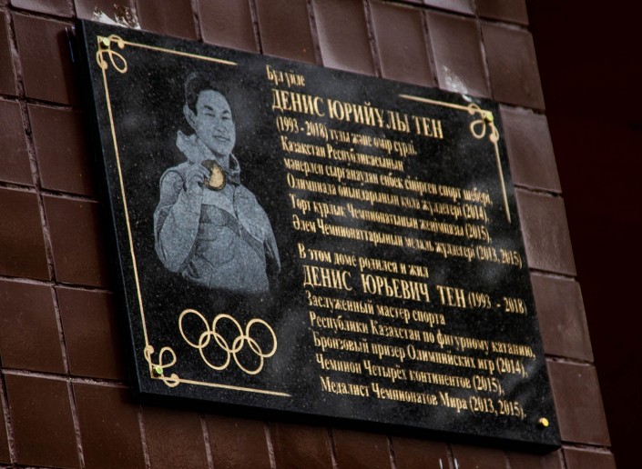 В Алматы открыли мемориальную доску памяти казахстанского фигуриста, бронзового призера Олимпийских игр Дениса Тена, передает корреспондент Tengrinews.kz. Памятная доска установлена на фасаде дома по проспекту Назарбаева. В этом доме родился и жил спортсмен.