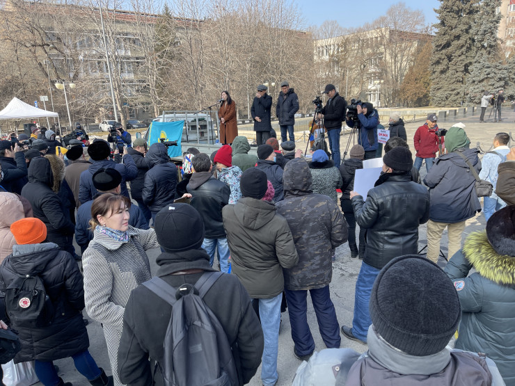 Санкционированный митинг проходит в Алматы, передает корреспондент Tengrinews.kz.
