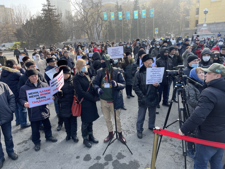 Собрание началось днем 5 февраля около 12.00. Люди собрались возле памятника Шокану Уалиханову, расположенному по улице Шевченко.