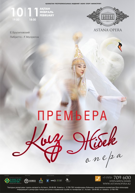 Первая казахская опера Евгения Брусиловского "Қыз Жібек" была создана в 1934 году. Это трогательная история о любви доблестного воина Толегена и красавицы Жібек, двух влюбленных из разных родов – Жагалбайлы и Шекты. Межродовые разногласия, а также слепая ревность Бекежана привели к трагическому финалу.