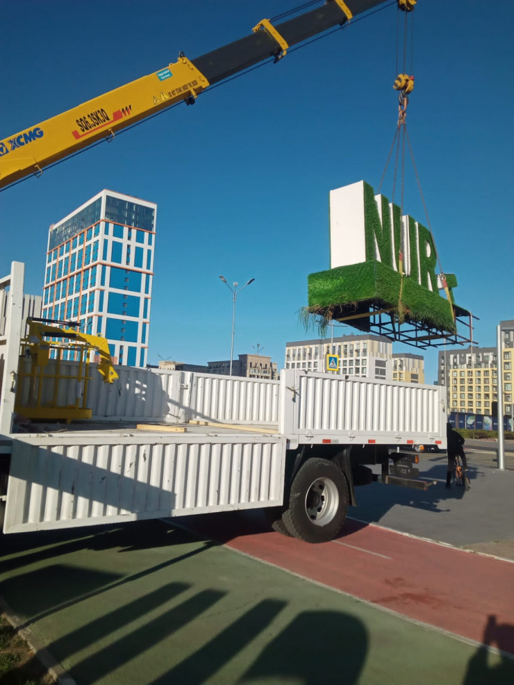 Надпись также демонтируют в парке Влюбленных, который находится в центре столицы возле торгового центра "Хан-Шатыр".