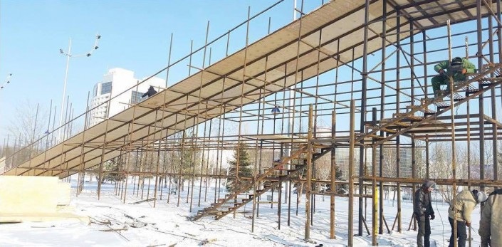 В Астане началось строительство самой масштабной горки в Казахстане, ее высота составит 8 метров, а длина около 40 метров. Общая длина ледяного спуска почти 150 метров. Об этом сообщает astana.news.