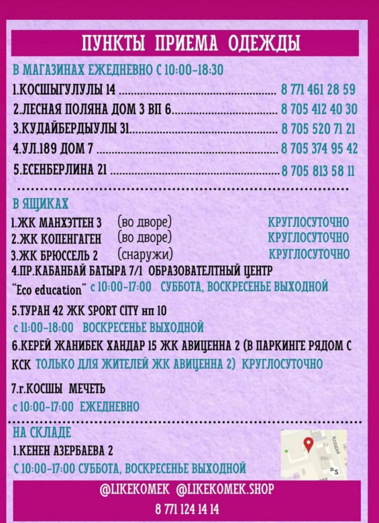 Но летом у нас был потоп, затопило склад зимних вещей. Такое количество вещей мы не смогли высушить, они начали гнить, большую часть пришлось выкинуть. Сейчас к нам обращаются много людей, просят помочь с зимней одеждой, обувью", - рассказал Даулет.