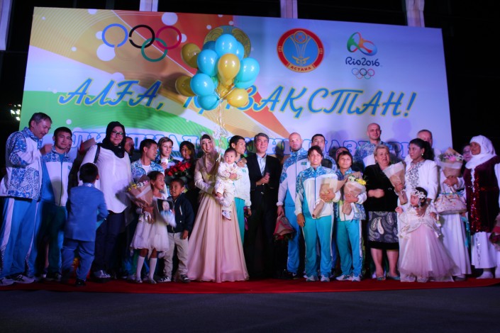 Встречать спортсменов приехал лично аким города Асет Исекешев. Он одним из первых поздравил призеров Олимпиады с триумфом на Рио. Затем участники летней Олимпиады утонули в объятиях своих родных и близких. Пройдя паспортный контроль спортсмены вышли к толпе болельщиков. Увидеть вживую героев приехали сотни астанчан и гостей столицы. Поздравить своего отца, несмотря на позднее время, приехал и малолетний сын Данияра Елеусинова Даниэль.