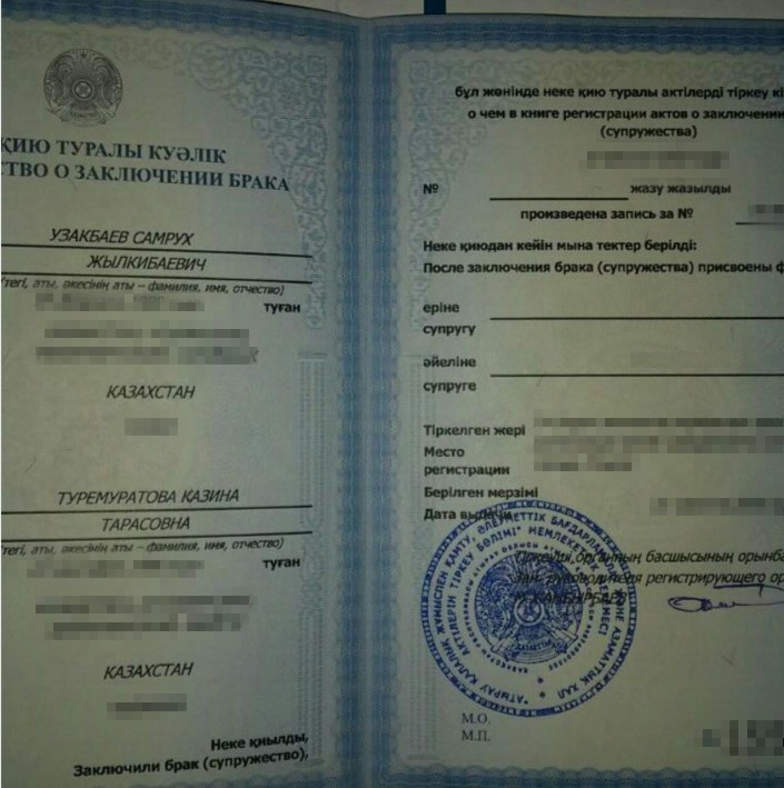 Отметим, что по документам жениха зовут Самрух, а невесту Казина.