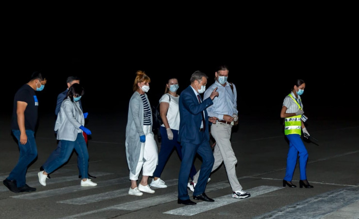Самолет с медиками приземлился поздним вечером в международном аэропорту Тараза "Аулие-Ата". В составе прибывшей группы - врач-инфекционист, анестезиолог-реаниматолог, эпидемиолог и специалист амбулаторно-поликлинической службы.