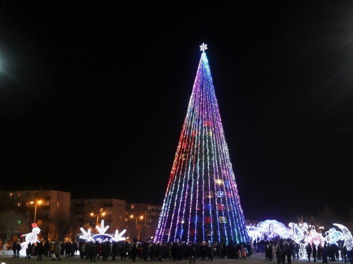 20 декабря в Актобе на проспекте Абая состоялось зажжение огней на главной елке города. Зажигать ее Деду Морозу помогли победитель республиканского телепроекта "Мен қазақпын" Ардак Елеусиз и известная спортсменка, многократная чемпионка Казахстана, Азии и мира по самбо Райса Байлиева. 30-метровая конструкция, самая большая в Актюбинской области, обошлась бюджету в ноль тенге. Искусственная красавица была приобретена еще в 2011 году на спонсорские средства. Правда, "дерево" пришлось немного подремонтировать - из-за вандалов была подпорчена его нижняя часть, рассказали в секторе благоустройства и озеленения городского отдела ЖКХ. Для ночного оформления главной елки было использовано 38 гирлянд общей длиной более одного километра. Кроме этого, елка украшена национальным орнаментом. Управление светодиодным ночным освещением елки проводится с помощью записанной компьютерной программы.