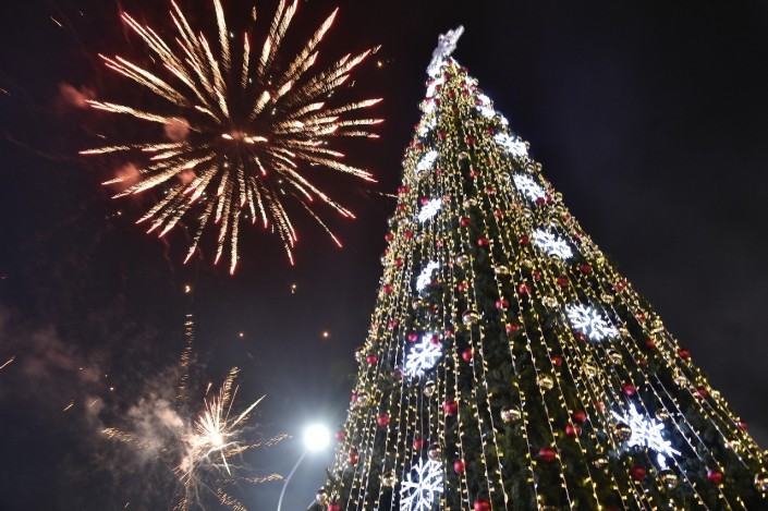 В Шымкенте 20 декабря зажгли огни главной 17-метровой елки на площади имени аль-Фараби. Главные елки поставили в трех местах: на площади имени аль-Фараби, в сквере "Шәмші әлемі", на площади административно-делового центра. В качестве главной елки установили "лесную красавицу", приобретенную три года назад. Ее украсили 200 игрушек. 31 декабря будут организованы праздничные мероприятия, посвященные Новому году, на площади имени аль-Фараби с 11.00 часов дня до 00.30 часов ночи (концертная программа, дискотека, праздничный салют).