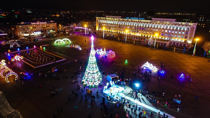 Две елки с ледовыми городками установлены на улице Конституции Казахстана (напротив городского и областного акиматов), еще одна украсила привокзальную площадь. Ежедневно на улице Конституции Казахстана до конца года будут проходить праздничные концерты, а 31 декабря ожидается фейерверк.