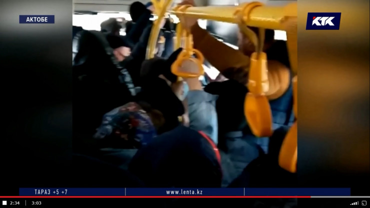 В карантинном Актобе сняли на видео давку в автобусе Кадры из видео