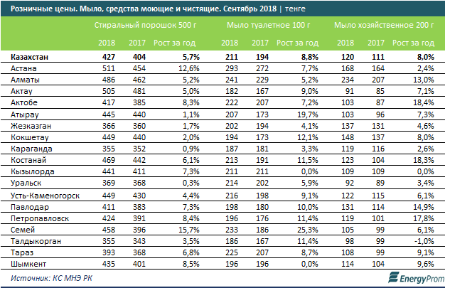 В Казахстане подорожали мыло и стиральный порошок, передает корреспондент Tengrinews.kz со ссылкой Energyprom.kz