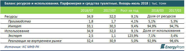 Рынок парфюмерии и туалетных средств также полностью во власти импорта. Так, собственное производство обеспечило лишь 5,1 процента спроса - это 1,8 тысячи тонн продукции за январь-июль текущего года. Это лишь на 4,1 процента больше, чем годом ранее.