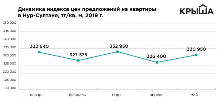 В Нур-Султане в мае квадратный метр оценивался продавцами в среднем в 330 950 тенге, что на 1,4 процента больше, чем месяцем ранее. Несмотря на то что динамика в столице меняется часто (это связано со структурой рынка), ситуация в целом стабильна. Средний показатель за пять месяцев равен 330 103 тенге, минимальные значения на уровне 326-327 тысяч тенге.