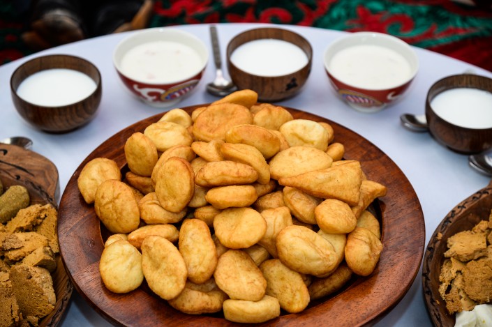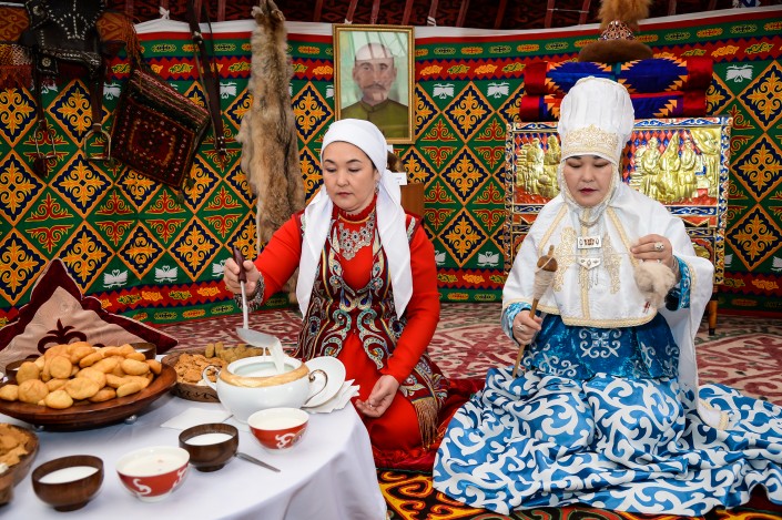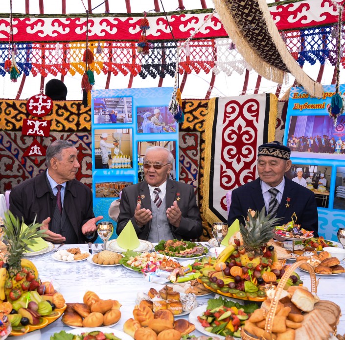 На центральной городской площади раскинулся этноаул из юрт, каждая юрта имела свое оригинальное название: "Шығыс жұлдызы", "Рухани жаңғыру", "Астана қаласына 20 жыл", "Қызылорда қаласына 200 жыл" и так далее. Каждый желающий мог отведать национальные угощения и принять участие в развлекательной программе для гостей.