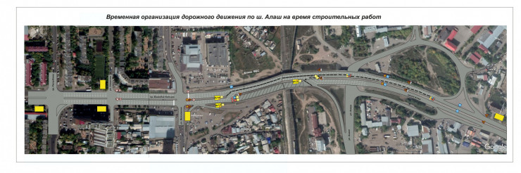 Для снижения нагрузки введут временный запрет на левый поворот с мостовой части на улицу Уалиханова, за исключением маршрутных автобусов. В целях разгрузки также будут проведены другие необходимые мероприятия на близлежащих перекрестках.