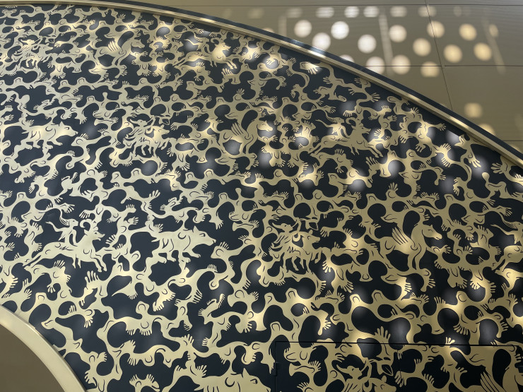 Входная арка павильона украшена петроглифами и элементами скифо-сакской культуры.