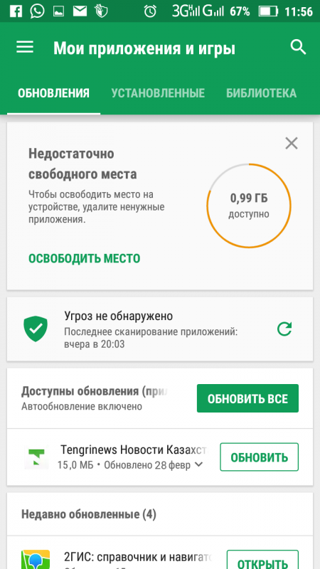 4. Далее появится список приложений, для которых доступны обновления. Если в вашем телефоне недостаточно для этого памяти, то система попросит освободить место.
