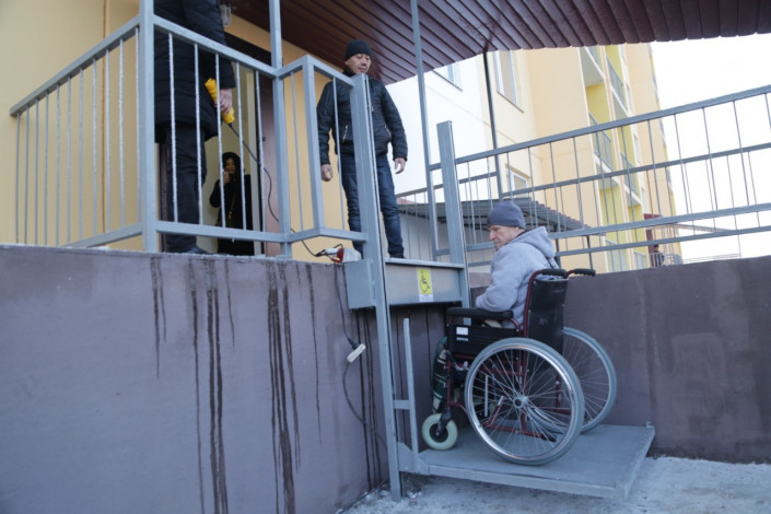 На входе в подъезд строители установили подъемник для людей в инвалидных колясках. Квартиры сделали просторными. Предусмотрели ширину дверных проемов и поручни в ванных комнатах.
