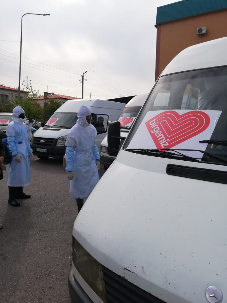 Сегодня автокараван с гуманитарной помощью в составе представителей ШГФ партии Nur Otan прибыл в жилой массив Кайнар булак для раздачи масок социально уязвимым слоям населения.