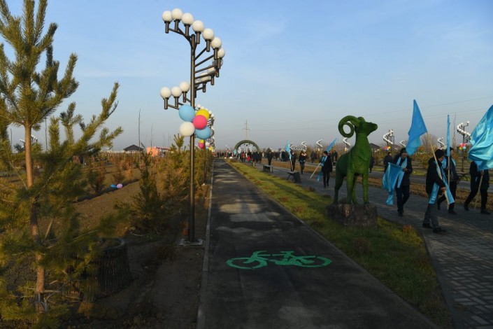 Строительство парка площадью 14 гектаров началось в августе этого года и завершилось в декабре. На строительно-монтажные работы было выделено 260 миллионов тенге. Строительство вело ТОО "Туркестан Жарык Тазалык".