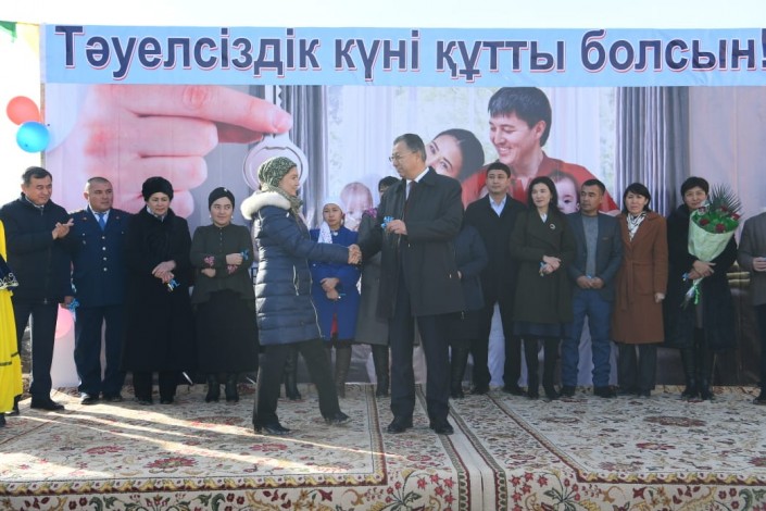 После поездки в Ордабасинский район аким области посетил с рабочим визитом Кентау, где в торжественной обстановке вручил новоселам ключи от новых квартир. В частности, в этот день в селе Старый Икан сдали в эксплуатацию служебный двухэтажный жилой дом на 10 квартир, а в селе Ынтымак сельского округа Шага - два жилых дома на 10 квартир каждый. В целом в этот день в Кентау новоселье отметили 30 семей.