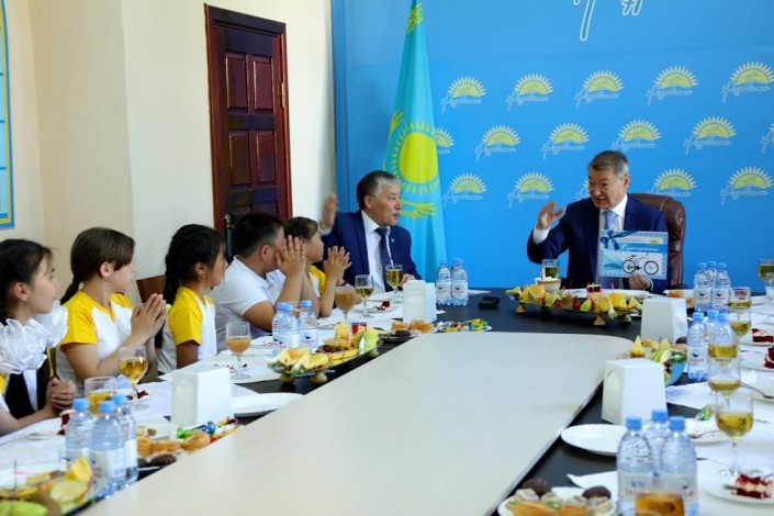 В праздник – Всемирного дня защиты детей Даниал Ахметов встретился с маленькими одаренными детьми региона. В рамках республиканской акции "Нұр Отан – детям!" в областном филиале накрыли "сладкий" стол для особых гостей, где в неформальной обстановке стороны провели увлекательную беседу. На "простом языке" аким области рассказал детям о планах развития Восточного Казахстана и республики в целом. Особо остановился на Четвертой промышленной революции. Оказалось, что и дети не далеки от этой темы. К примеру, 8-летний Антон Слугин несмотря на свой маленький возраст, много что знает об информационных технологиях. Победитель областных интеллектуальных конкурсов спрограммировал робот модели Lego Mindstorms, которую продемонстрировал акиму.