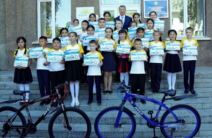 В честь праздника Даниал Ахметов вручил всем 26 детям сертификат на покупку велосипеда.