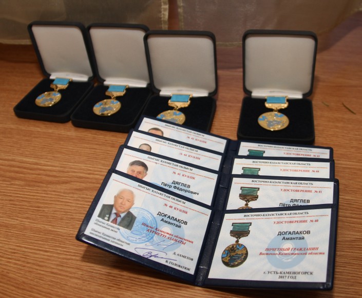 Почетными гражданами области в 2017 году признаны Амантай Догалаков, председатель Семипалатинского городского Совета ветеранов, Петр Дяглев, директор ТОО "Средигорненский", Юрий Кудинов, специалист Центра экологической безопасности, и доктор медицинских наук, профессор Толебай Рахыпбеков.
