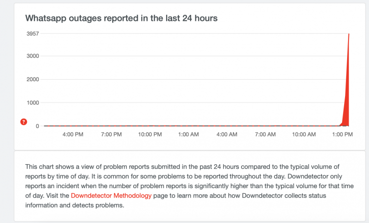 Согласно репортам на сайте Downdetector.com проблемы с приложением возникли примерно после 13.00 по времени Астаны. Аналогичные проблемы наблюдаются в Индонезии, Греции, Грузии и Мозамбике.