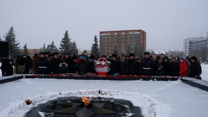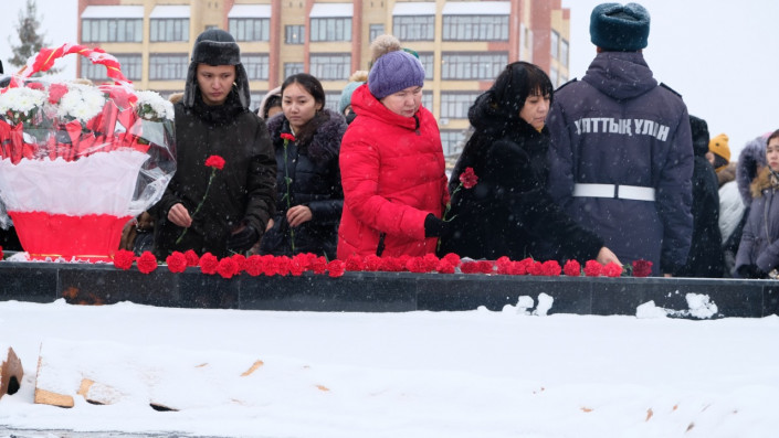 Сегодня цветы возложили у братской могилы, у памятника "Үш батыр қыз", маршалу Советского Союза Георгию Жукову, Герою Советского Союза Темиру Масину и у "Вечного огня" на площади Победы в Великой Отечественной войне.