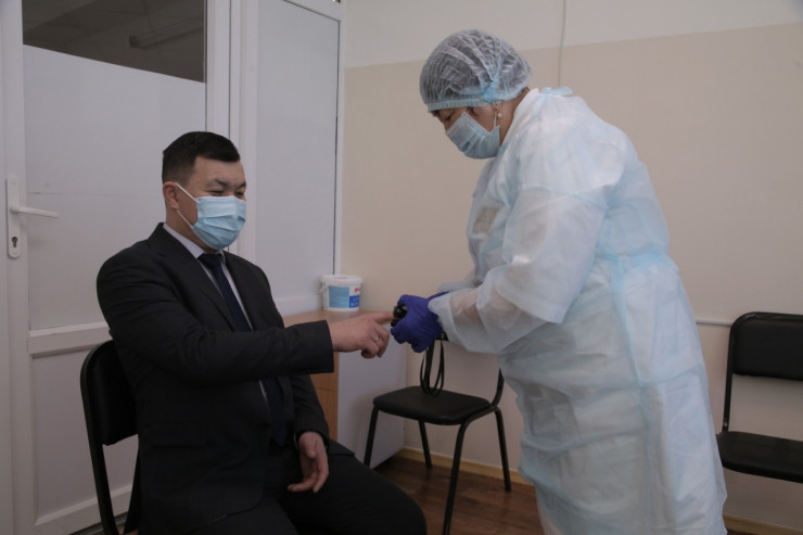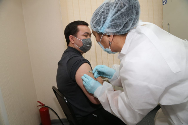 Среди добровольцев, получивших прививки от коронавируса, главные санврачи областей и городов, руководители управлений здравоохранения, акимы городов, заместители акимов областных центров и медработники.