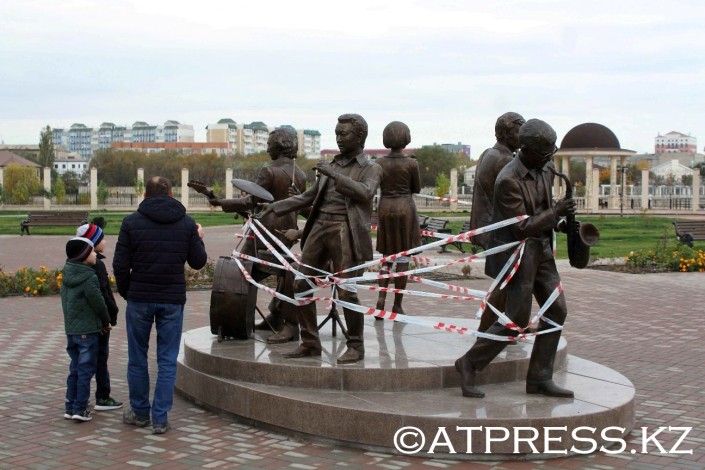 В Атырау вандалы спустя неделю после открытия испортили памятник легендарному казахстанскому вокально-инструментальному ансамблю "Дос-Мукасан" в новом ретро-парке, сообщает atpress.kz.