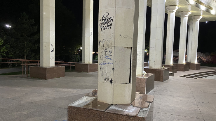 Вандалы изуродовали колоннаду в парке Первого Президента в Петропавловске