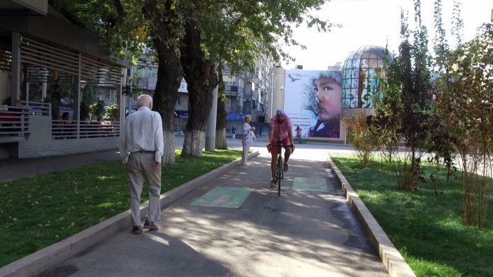 Велосипедный Алматы. Тестирование велодорожек Кадр с видео TengrinewsTV
