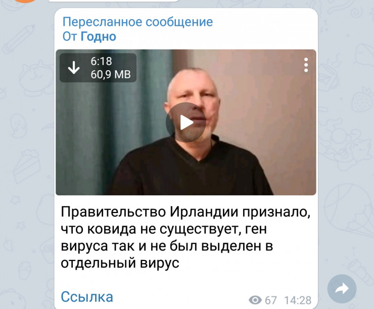 Видео, посвященное теме COVID-19, начинается с заявления о том, что власти Ирландии якобы признали, что вируса SARS-CoV-2 не существует. Утверждение базируется на выступлении журналистки Джеммы О’Доэрти, в котором она сообщила, что направила запрос в Департамент здравоохранения Ирландии и получила на него ответ, в котором было сказано, что вируса не существует. На самом деле, как отмечает портал, запрос журналистки отклонили на основании того, что существование вируса SARS-CoV-2 является научным фактом, как и вызываемое им заболевание COVID-19.
