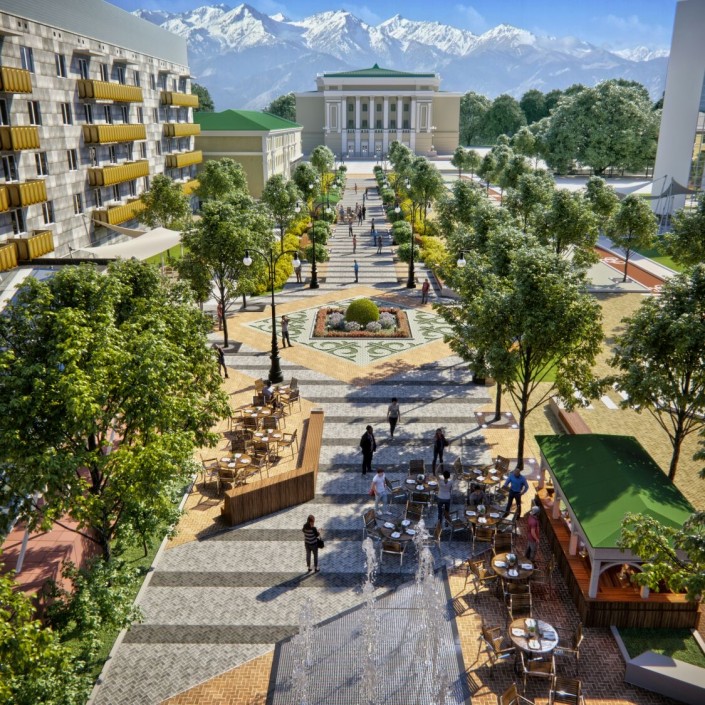 Улица Панфилова от пересечения Кабанбай батыра до Жибек жолы станет пешеходной, с возможностью проезда только спецтранспорта (скорые, пожарные). Подобное решение позволит соединить зеленым коридором Арбат и скверы у Государственного академического театра оперы и балета имени Абая. Пешеходная зона будет выложена гранитной плиткой, высажена деревьями и цветочными композициями, будут размещены площадки для отдыха, игровые и спортивные площадки и скамейки. Работы планируется завершить до конца текущего года.