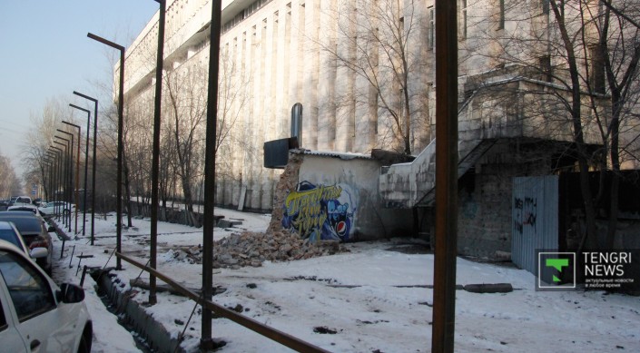 Сейчас по периметру здания, в частности по улицам Курмангазы и Пушкина, вбили специальные стойки для строительного забора. По словам собеседницы, застройщики якобы заявили, что на этом месте планируется построить торговый центр и многоярусную парковку.