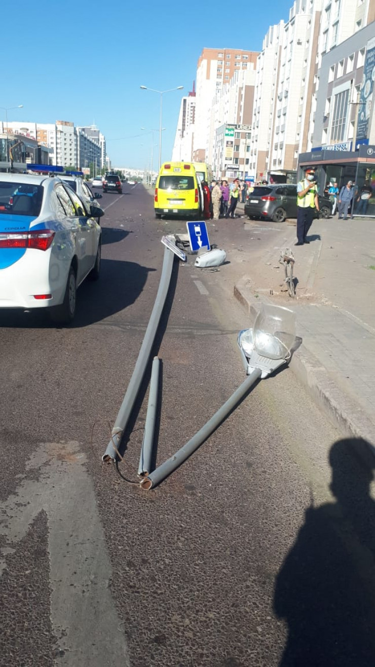 30 мая в 08.05 утра 31-летний водитель, управляя автомашиной марки Kia Carens, следуя по проспекту Момышулы в сторону проспекта Тауелсиздик, на пересечении с улицей Сатпаева, не справившись с рулевым управлением, допустил наезд на опору уличного освещения, опрокинул ее, а затем наехал на остановочную площадку.