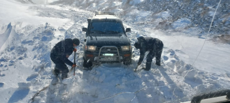 Водителя спасли из снежного заноса на трассе в Алматинской области