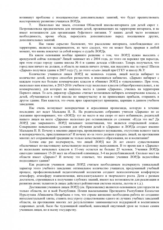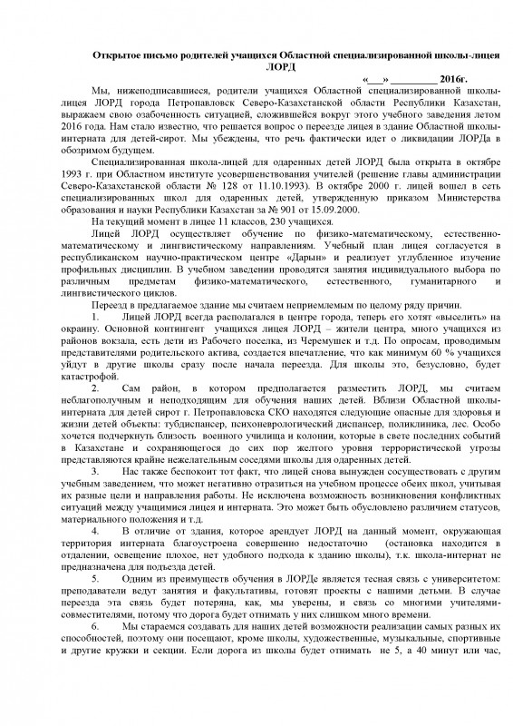 Вокруг лицея в Петропавловске разгорается скандал республиканского масштаба Родители и воспитанники лицея для одаренных детей ЛОРД протестуют против переселения